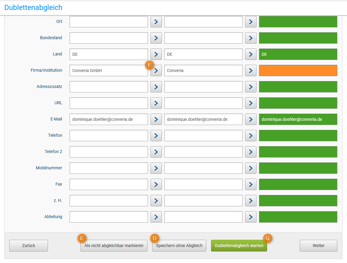Find and synchronize duplicate personal entries (duplicate synchronization)