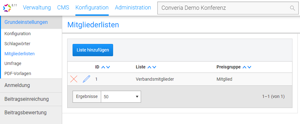 In order to select a list in the member data, a list must first be created under Configuration -> Basic settings -> Member lists.