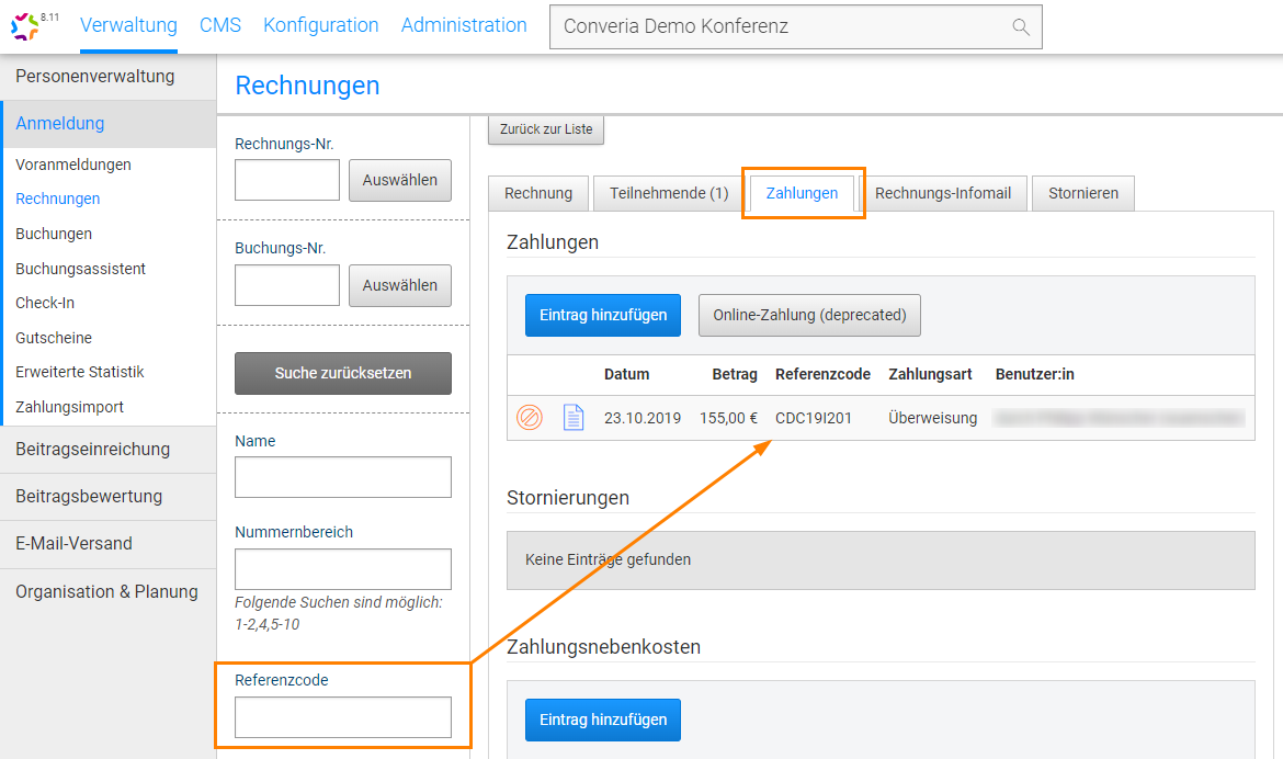 An important piece of information in conference participant management is the receipt of payments from participants. **If the payment processing service (ticketing) has been booked through Converia**, we regularly update the payment information for transfers, refunds, etc. This is done automatically via the payment interfaces during the booking process for credit card and PayPal payments.