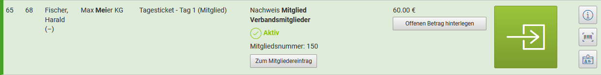 Unter gewissen Umständen kann es vorkommen, dass Personen eine Mitgliederbuchung haben, der Mitgliedsstatus zum Zeitpunkt des Check-Ins aber nicht mehr gültig bzw. aktiv ist. In diesen Fällen muss der Mitgliedsstatus geprüft und ggf. im Mitgliedereintrag auf A*ktiv* gesetzt werden, damit der Check-In möglich ist.