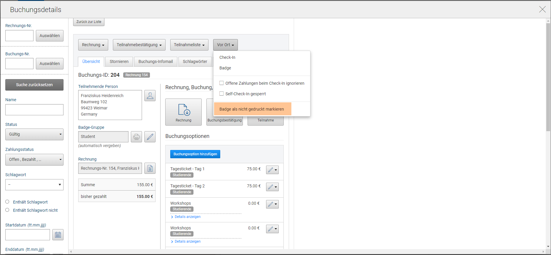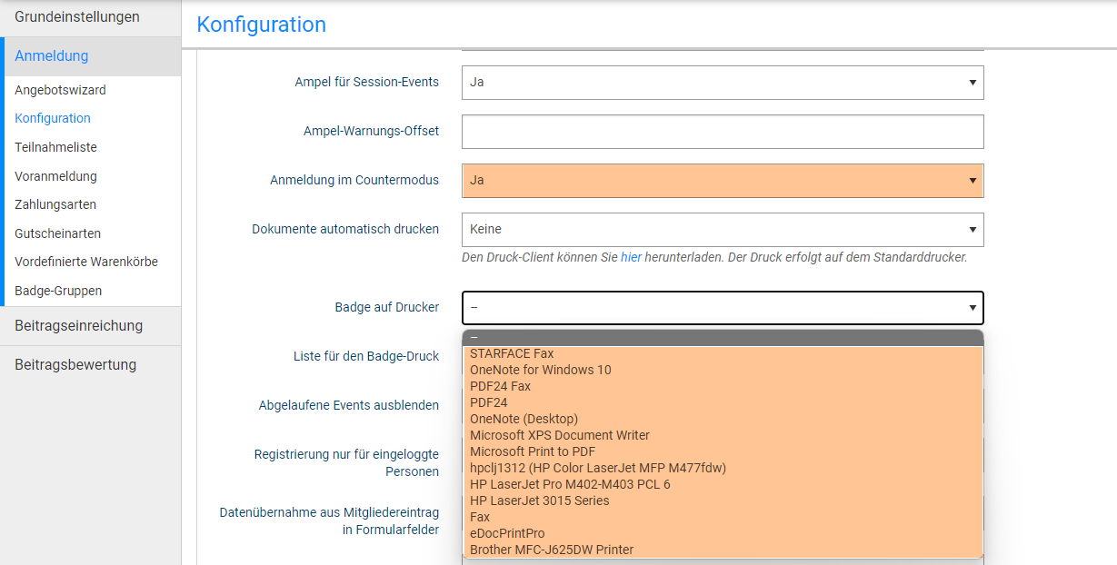 Full → Check-In und Badge-Druck sind über eine Station möglich